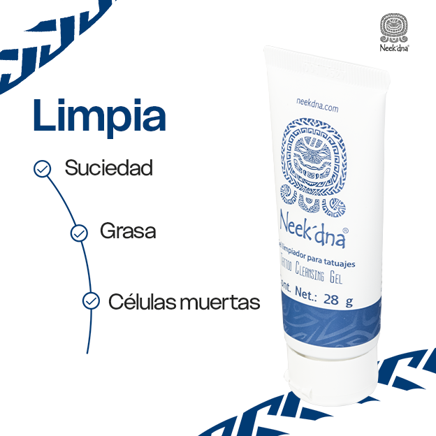 Neek'dna Gel Limpiador para tatuajes elimina la suciedad, grasa y residuos de